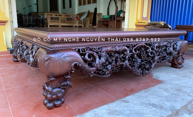 Sập vẫn là đồ nội thất mà nhiều người ưu tiên khi mua đồ gỗ nội thất vì nó có thể được sử dụng vào nhiều việc, hơn nữa nó còn tô điểm cho phòng khách thêm phần hoành tráng, sang trọng bề thế. Đồ gỗ Nguyễn  Thái trân trọng giới thiệu đến quý vị bộ sập ngũ phúc nho gỗ gụ cỡ đại hàng làm cực kỹ siêu VIP.