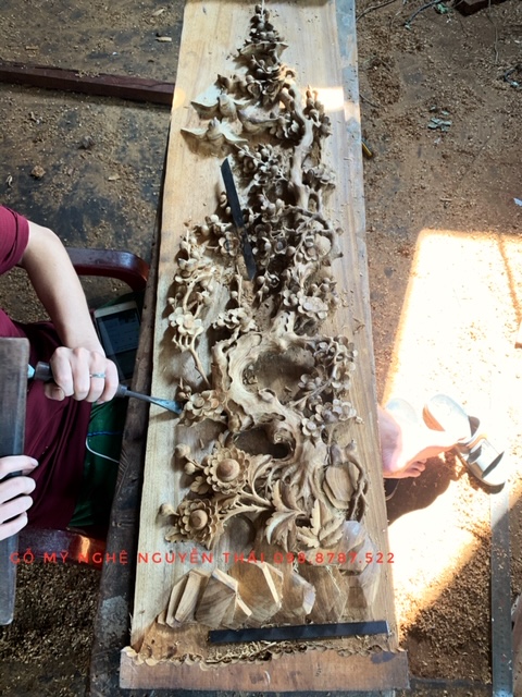 Để làm ra được một bộ tranh tứ quý đẹp, trước hết là phải lựa chọn được gỗ đẹp chất lượng, loại gỗ chúng tôi lựa chọn là gỗ gụ mật hay còn gọi là gụ Gia Lai của Việt Nam chất gỗ rất nặng và chắc bền bỉ theo năm tháng, chọn từ những cây gỗ già nhất có vân đẹp. để có một bộ tranh đẹp công đoạn chạm là quan trọng nhất sản phẩm được tạo ra bởi những nghệ nhân với đôi tay tài hoa tinh tế với những đường nét chạm sắc nét có hồn , các chi tiết chạm kênh bong sinh động có chiều sâu rất giống thực tế, tỉ mỉ trên từng đường nét. Chạm tay 100% không chạm CNC, từng bộ tranh chạm tay đều có nét riêng biệt nó tạo ra giá trị khác biệt cho chủ nhân mà hàng chạm máy CNC không thể có được.